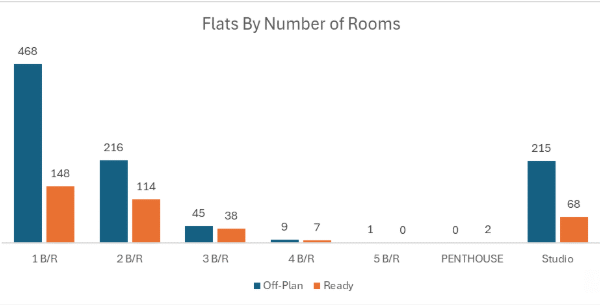 | Off-plan was overwhelmingly driven by flats, with modest contributions from villas and limited activity in commercial and hospitality units. |