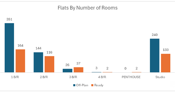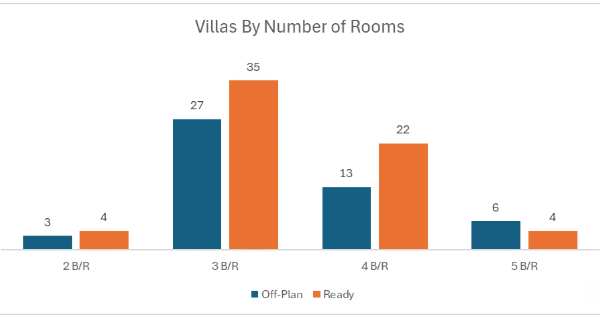 Apartments led off-plan decisively, with villas a distant second; hospitality and commercial were minimal.