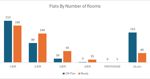 Off-plan’s 61% share signals sustained buyer confidence in pipeline projects and payment-plan flexibility. Ready activity remains healthy, anchored by apartments. Watch for launch cadence and pricing in villa communities; if supply tightens, ready villas could see firmer values while apartments continue to drive daily liquidity.