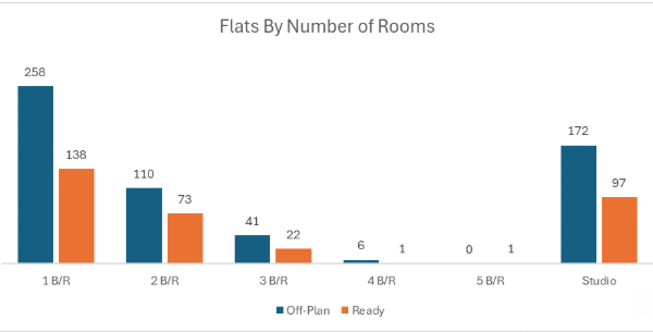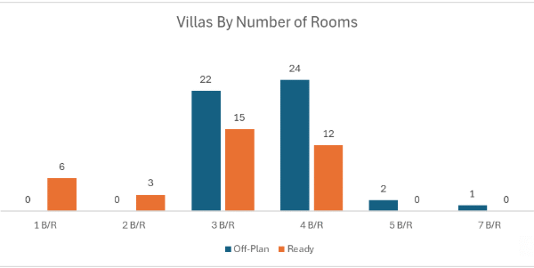 | Off-plan activity was led overwhelmingly by apartments, with villas a distant second and limited hotel/Commercial turnover. |