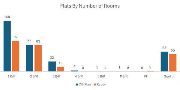 | Off-plan activity was overwhelmingly apartment-led, with villas providing the secondary pillar and only marginal contribution from hospitality and commercial assets. |