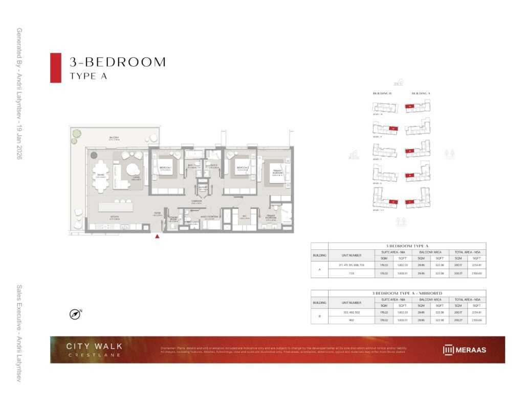 Crestlane – City Walk – 3 Bedroom Apartments