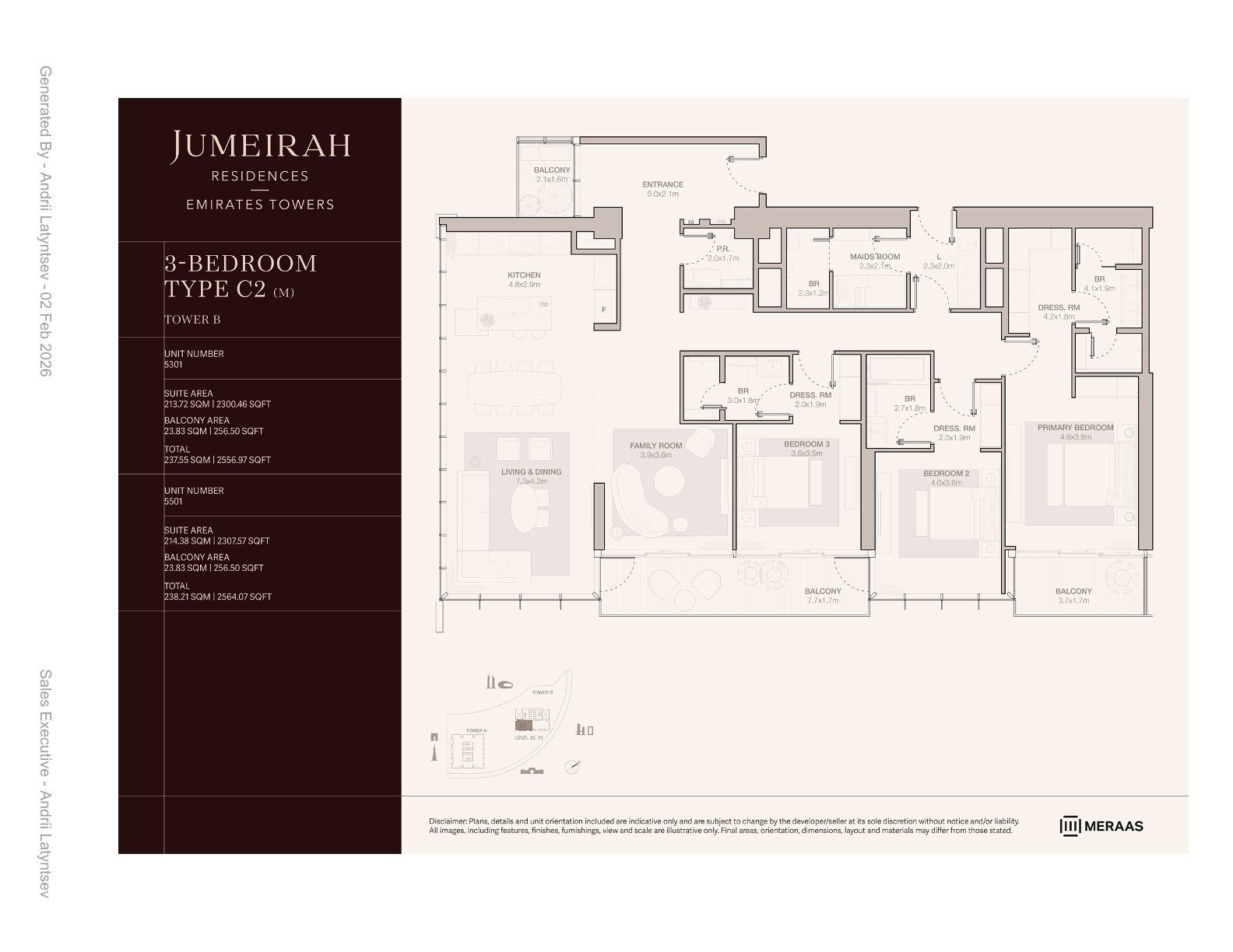 Saleable Area (Sq ft) : 2,557